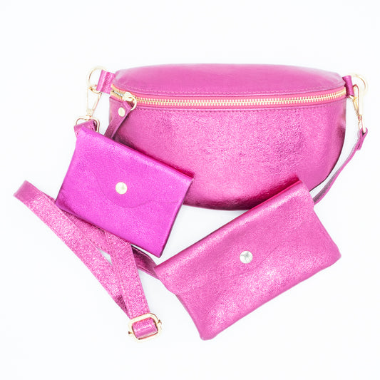 Handtas metallic fuchsia