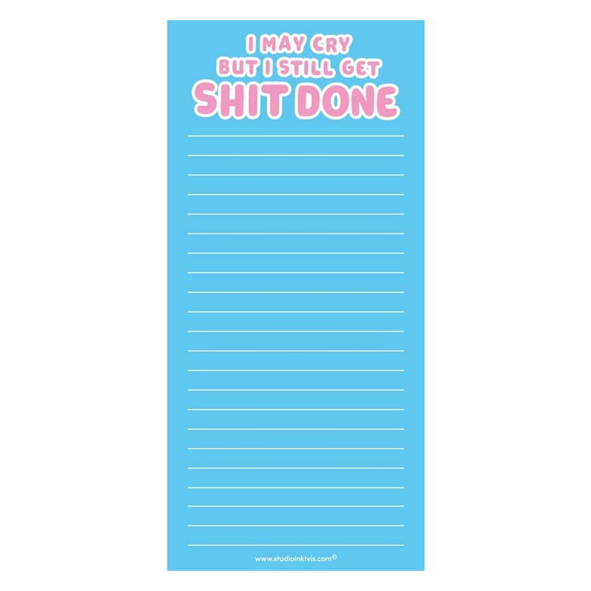 To do blok I may cry but I still get shit done of niet? Doe jij ook alsof je alles onder controle hebt? Dan helpt deze blok in elke geval ! Niet alleen hartstikke praktisch, maar ook gewoon cute. Waar je To do blok 10×21 cm I may cry but I still get shit done allemaal voor kunt gebruiken ?! Boodschappenlijstjes, takenlijstjes, goede voornemenslijstjes – bijna ons hele dagelijks leven lijkt te bestaan uit lijstjes ;-) Dit is niet voor niets! Ze helpen ons brein om optimaal te functioneren! Het blok is dus niet alleen enorm geschikt om lijstjes te maken, maar ook ideaal voor notities. Notitieblok van Studio Inktvis is een blok bestaande uit 50 pagina’s van 80 grams papier.